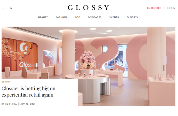 “It was important to create a new kind of shopping experience, “one that fosters connection, inspires curiosity and wonder, and invites people to participate in Glossier in 3D.…