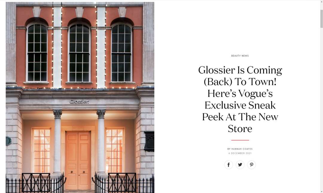 “Forget Santa Claus, the most important arrival in London this festive season is a new Glossier store. Set in the heart of Covent Garden…